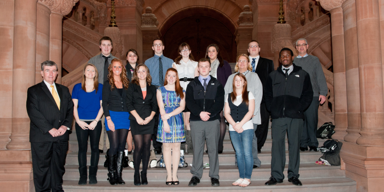 Senator Breslin is pictured congratulating the recently confirmed superintendent of the New York State Insurance Department, James Wrynn.