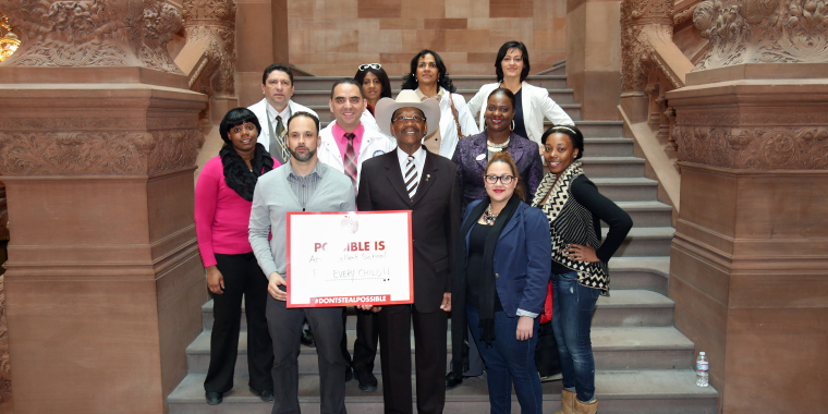 Senator Díaz gathers with members of the New York Hispanic Clergy Organization and Familes for Excellent Schools on the Million Dollar Staircase, NYS Capitol, March 25, 2015
