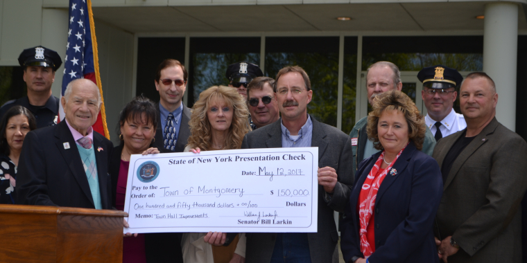 Senator Larkin Presents $150,000 Check To Town Of Montgomery For Town Hall Improvements