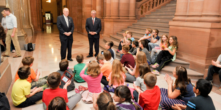 State Senator Hugh T. Farley (R, C, I – Schenectady) had the pleasure of meeting students from McNab Elementary School, Gloversville Enlarged School District, when they came to Albany on May 23rd, with their Principal Jim Crawford, to tour the Capital. Students in Donna McGrath’s class were on the trip.