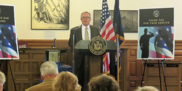 State Senator John A. DeFrancisco was pleased to recognize Joseph O'Hara and Judge Nicholas Midey during the Syracuse St. Patrick's Grand Marshal Dinner on Friday, March 11, 2016. Joseph O'Hara was named the 2016 Grand Marshal and Judge Midey was named the Gael of the Year. To help honor these outstanding citizens, Senator DeFrancisco presented them both with separate New York State Senate Proclamations.
