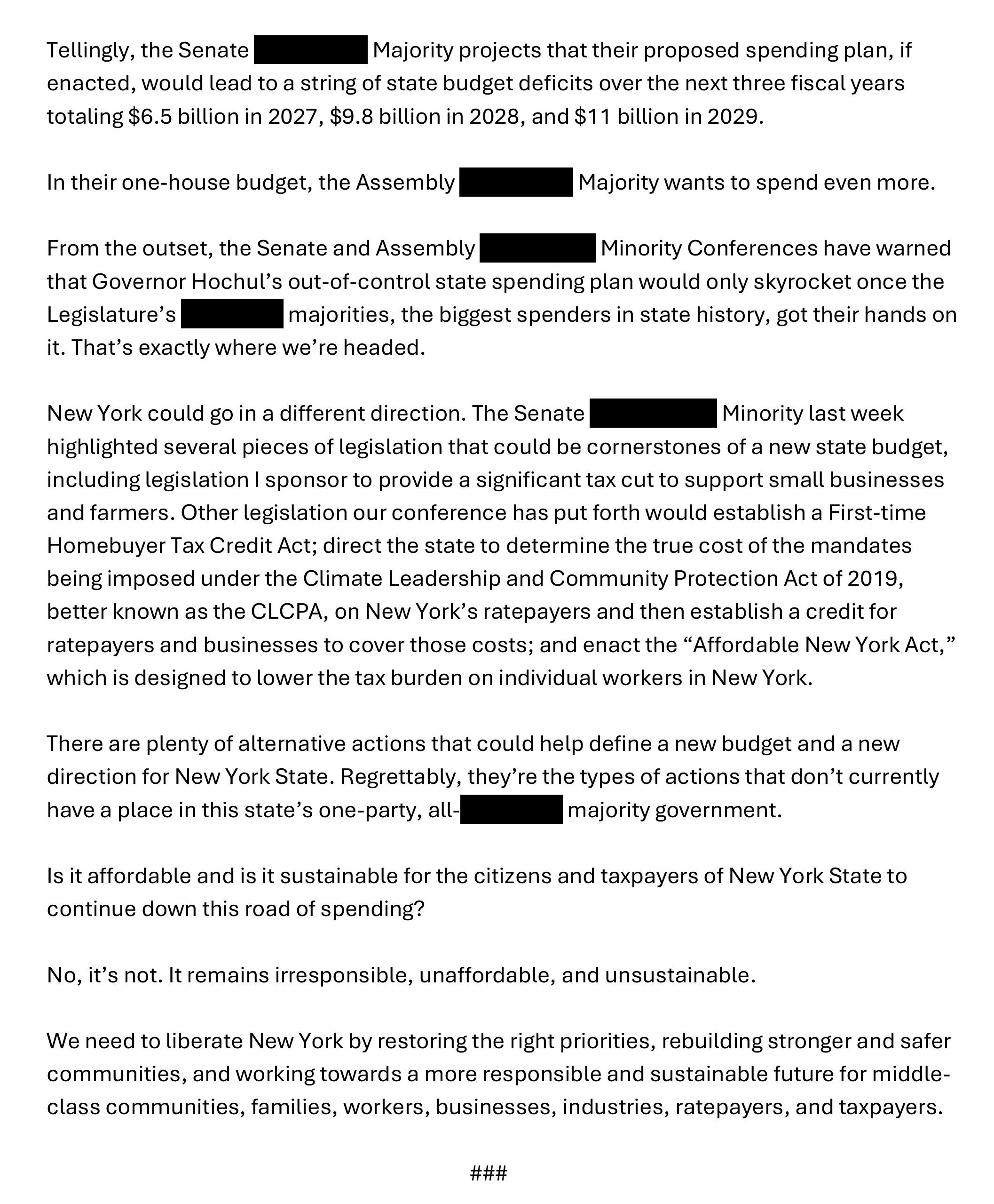 Is it affordable and is it sustainable for the citizens and taxpayers of New York State to continue down this road of spending?
